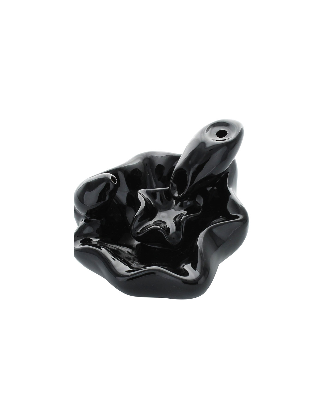 Porte-encens cascade à refoulement noir. Grâce aux cônes d'encens à reflux, une fumée blanche et épaisse s'échappe en cascade vers le bas, d'un bassin à l'autre.